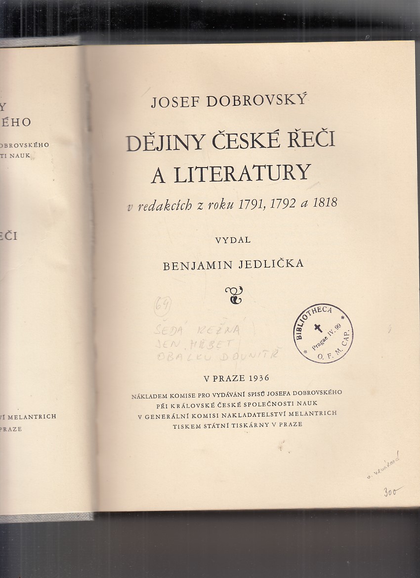 r.v. 1936, nakladatel komise pro vydávání spisů J. Dobrovského , 500 stran, o. vevázaná, převazba