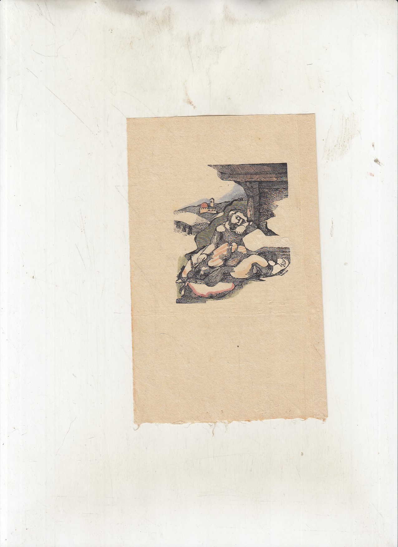 na o. obtisk knihy, která ležela na této; kolorovaná kresba O. Cootler