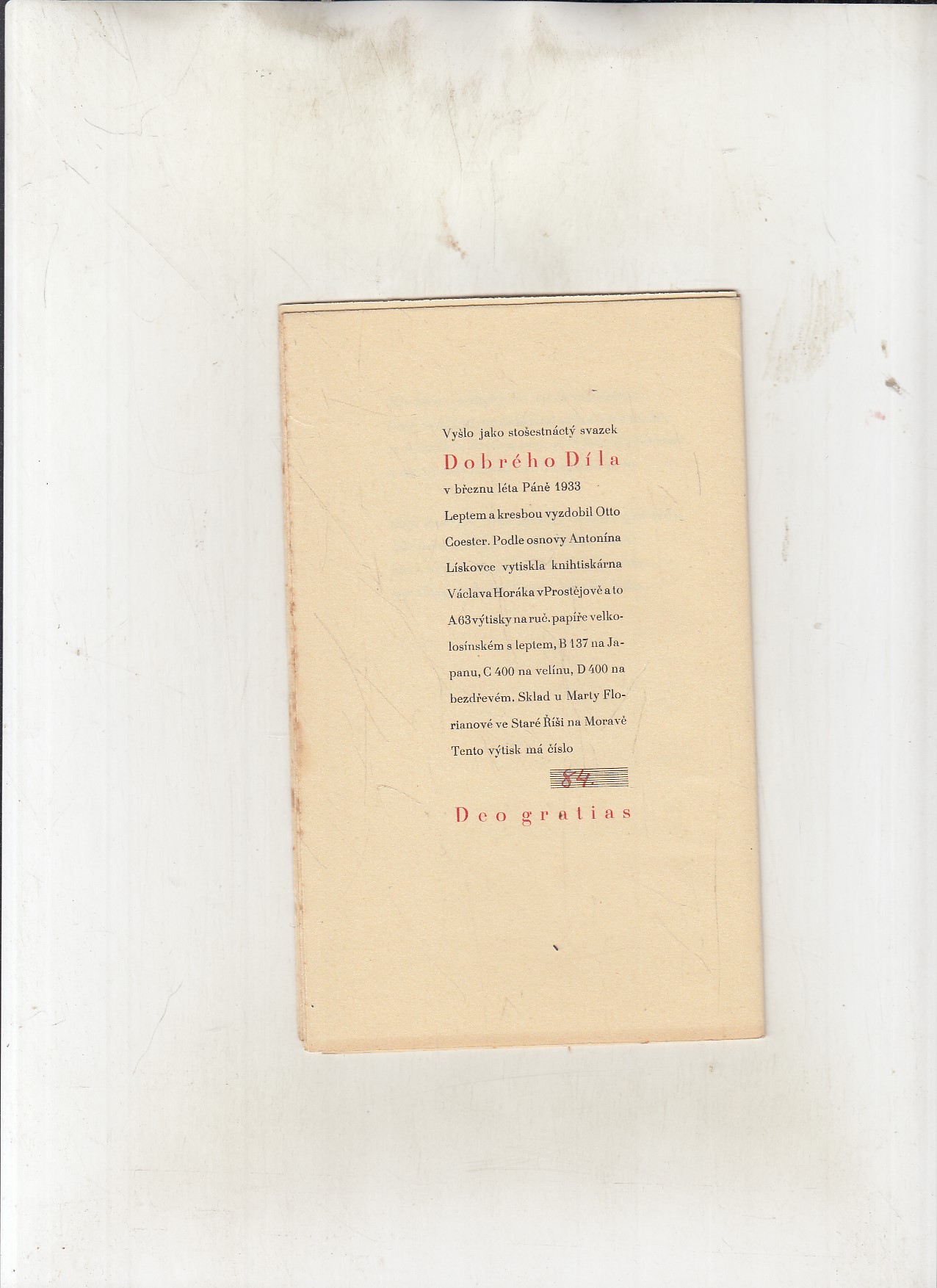 r.v. 1933, nakladatel Stará Říše na Moravě , 10 stran, originál brožovaná