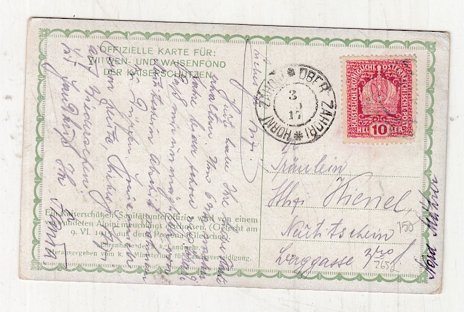 Prošla poštou, popsaná, se známkou, lehce odřené růžky.