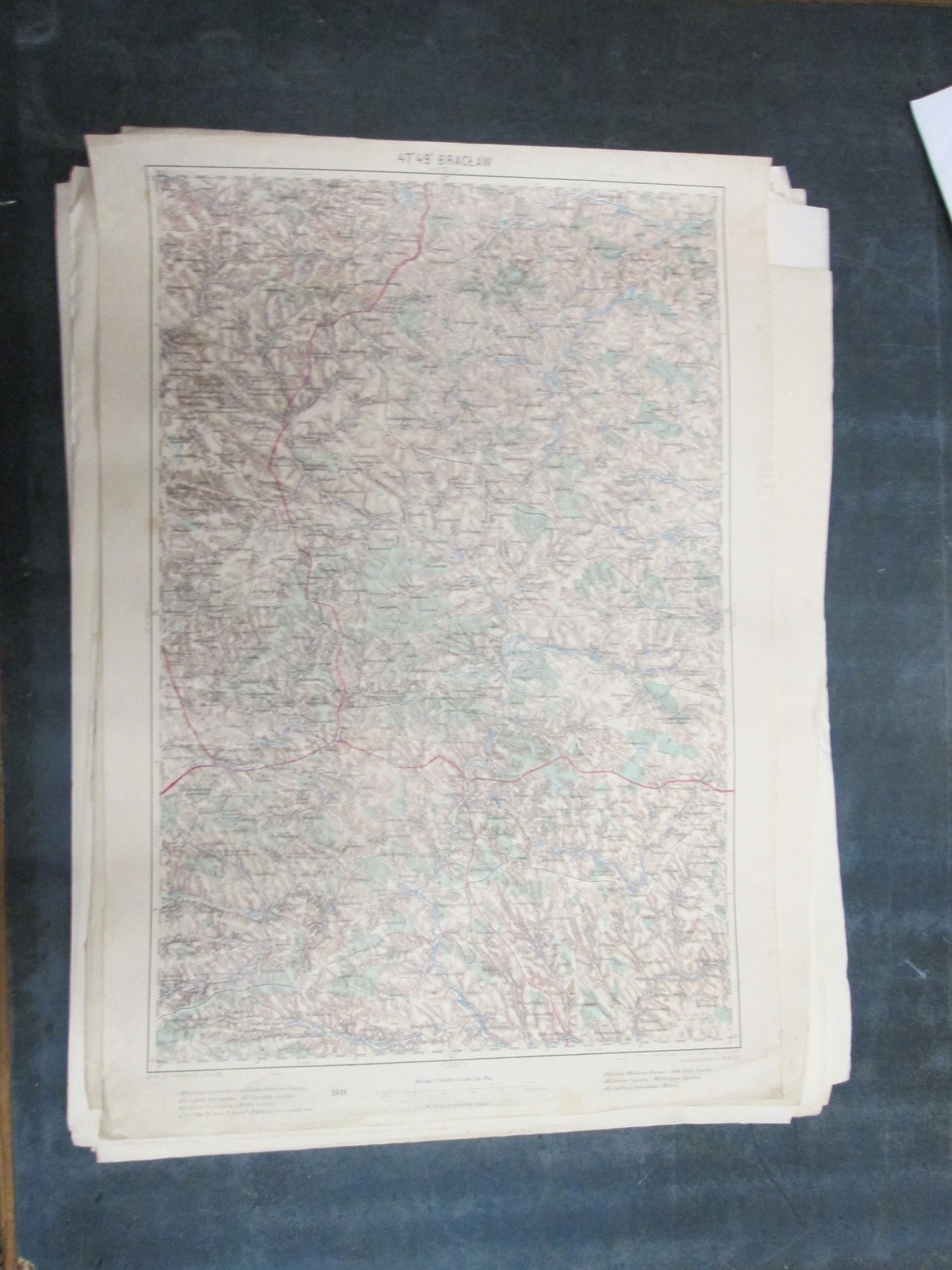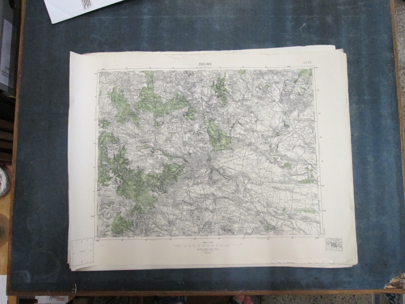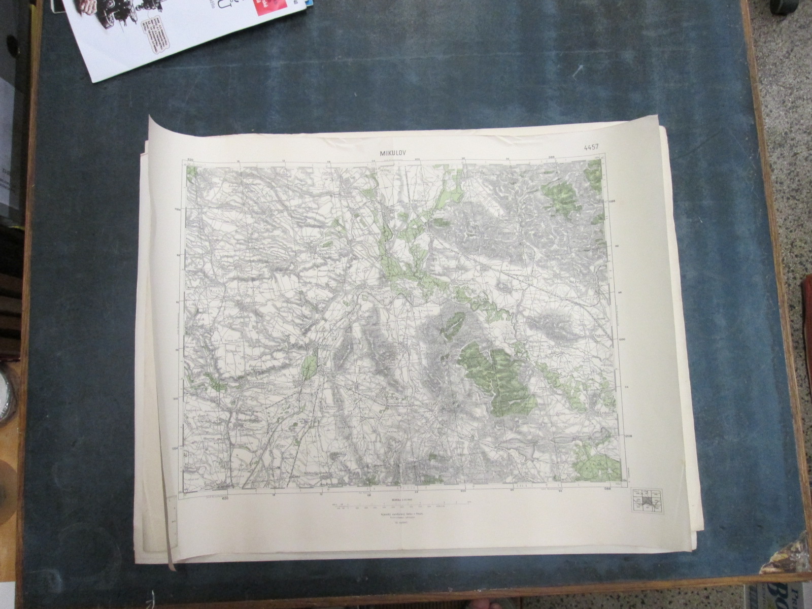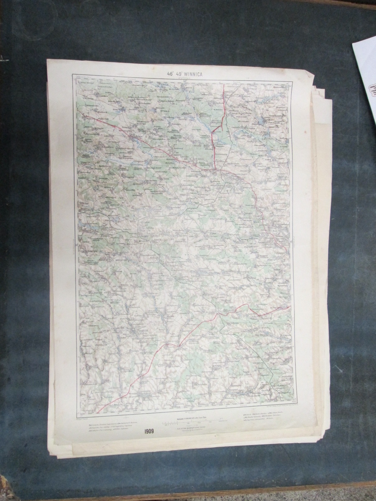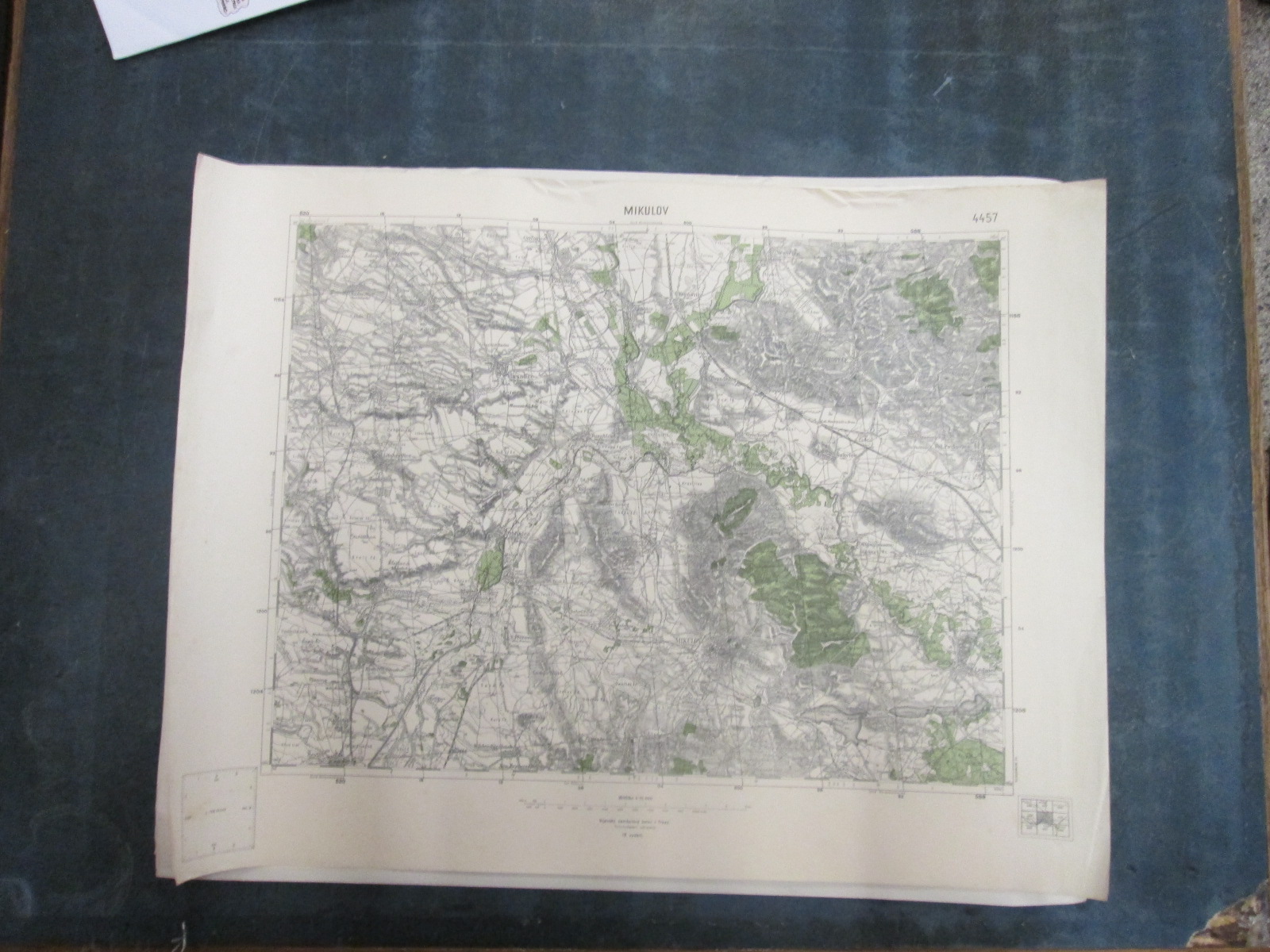 , Papírová mapa, na níž jsou nalepeny, pravděpodobně dodatečně desky. Desky popsány perem. Mapa místy mírně natržená. Na mapě jsou četné fleky. Měřítko: 1: 200 000
