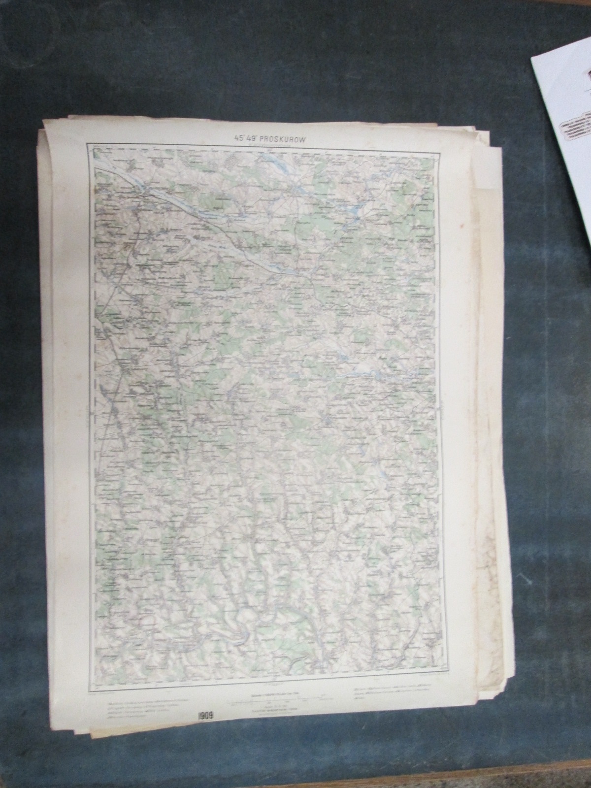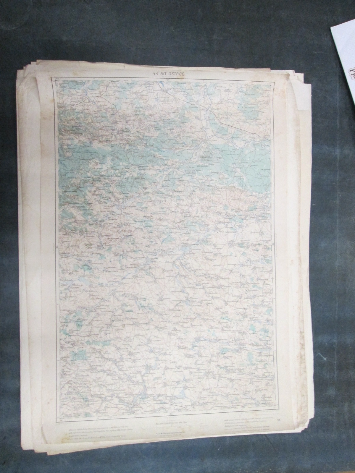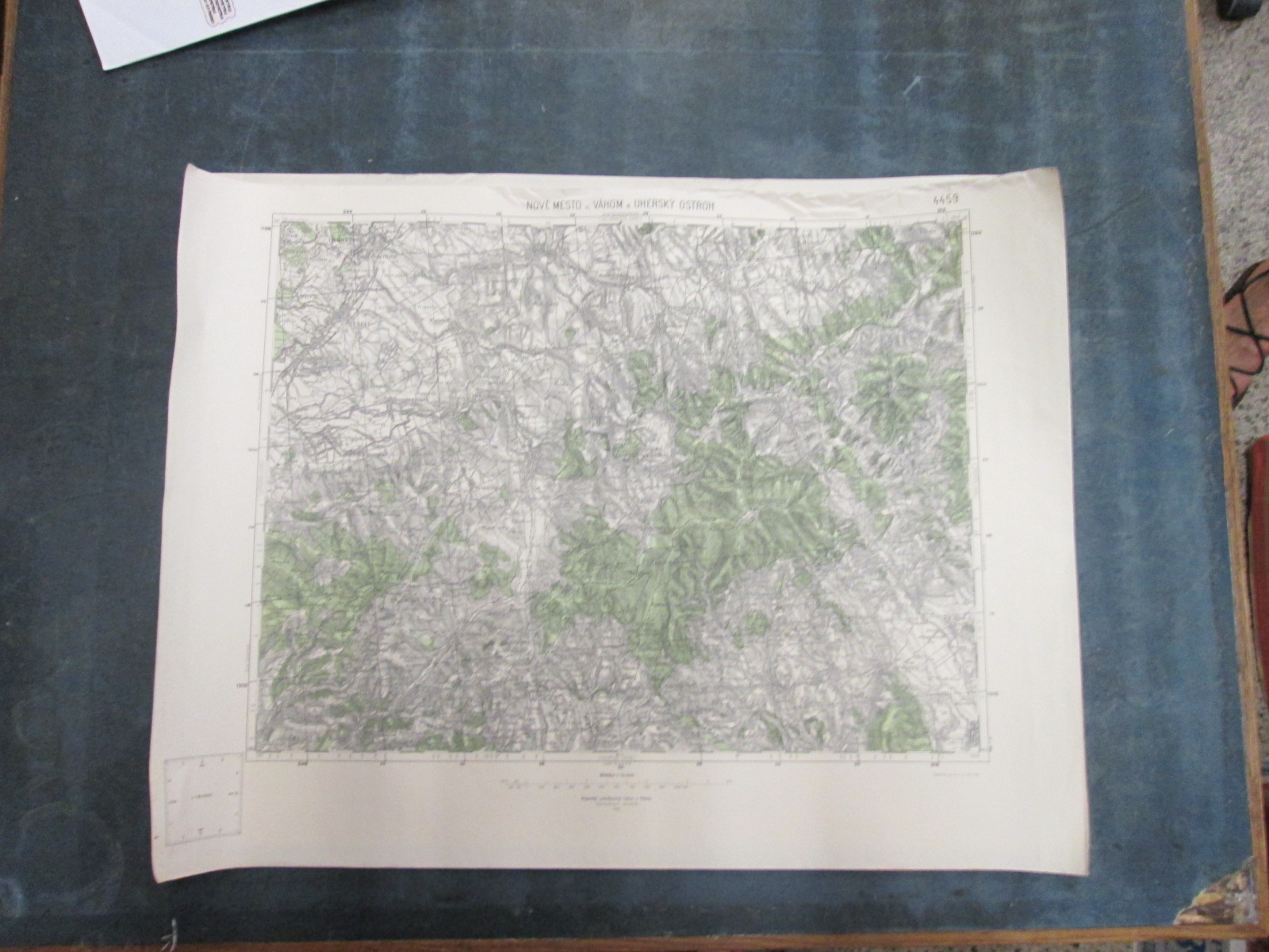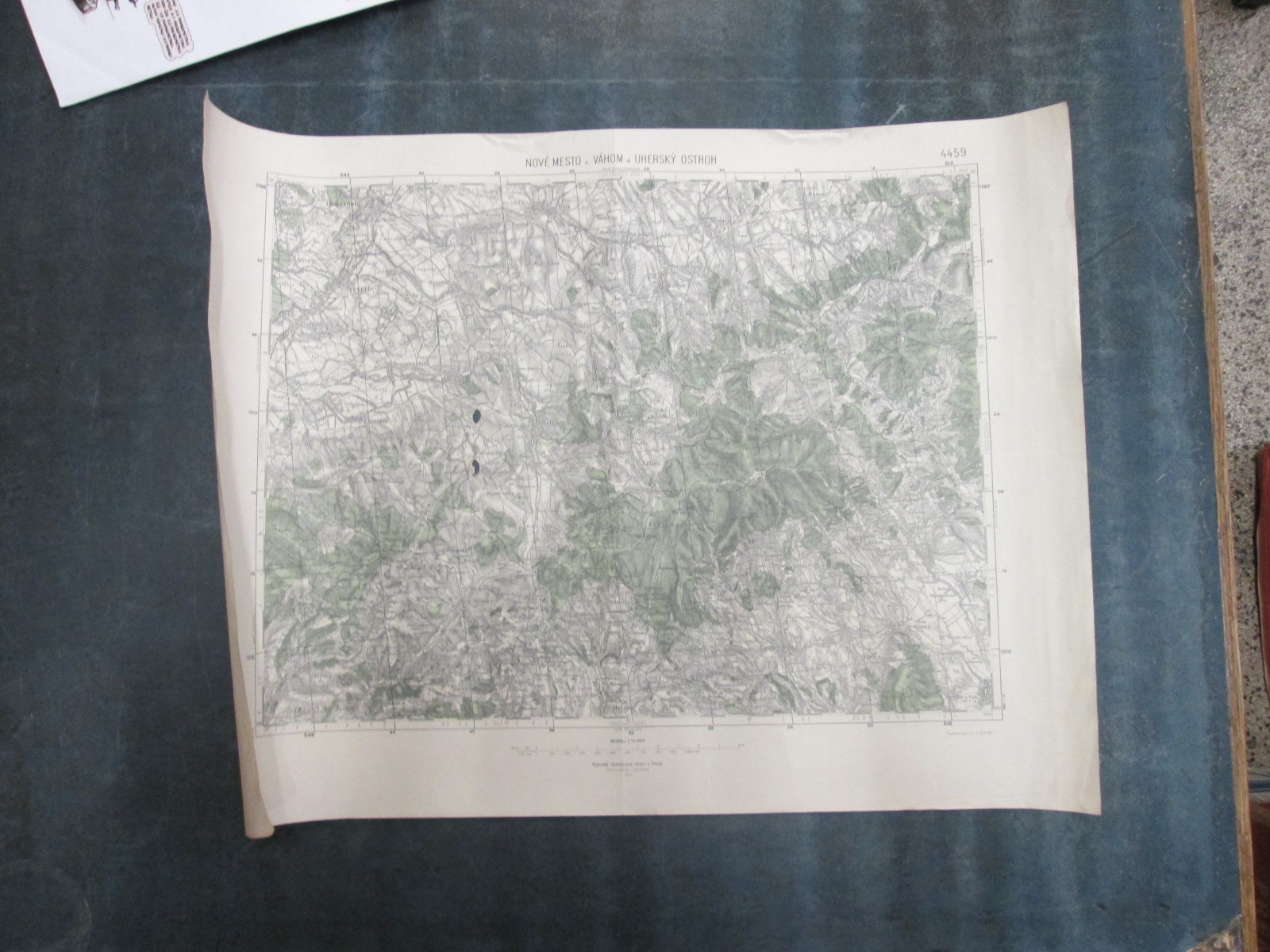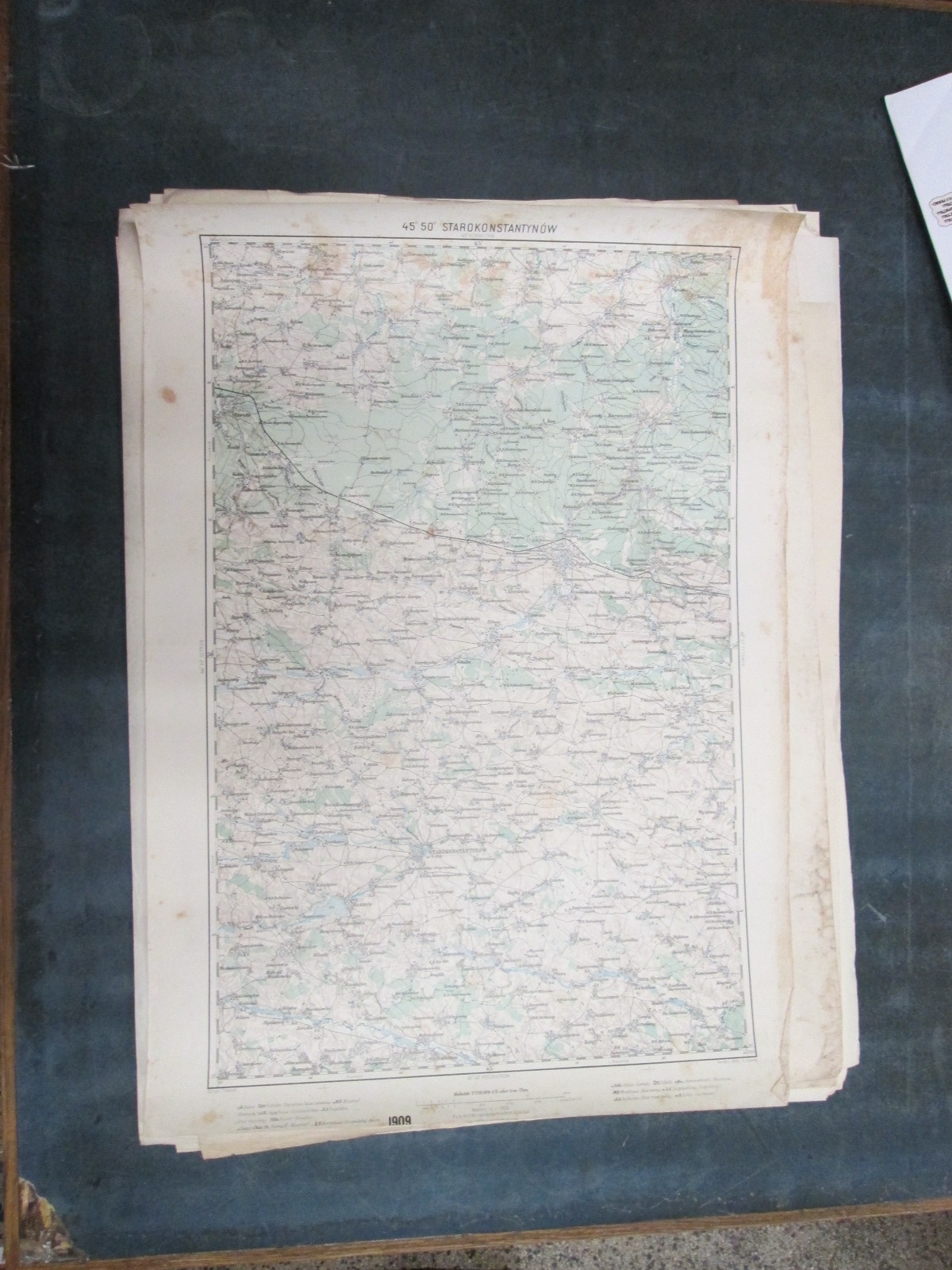 , Papírová mapa, na níž jsou nalepeny, pravděpodobně dodatečně desky. Desky popsány perem. Mapa místy mírně natržená. Na mapě jsou četné fleky. Měřítko: 1: 200 000
