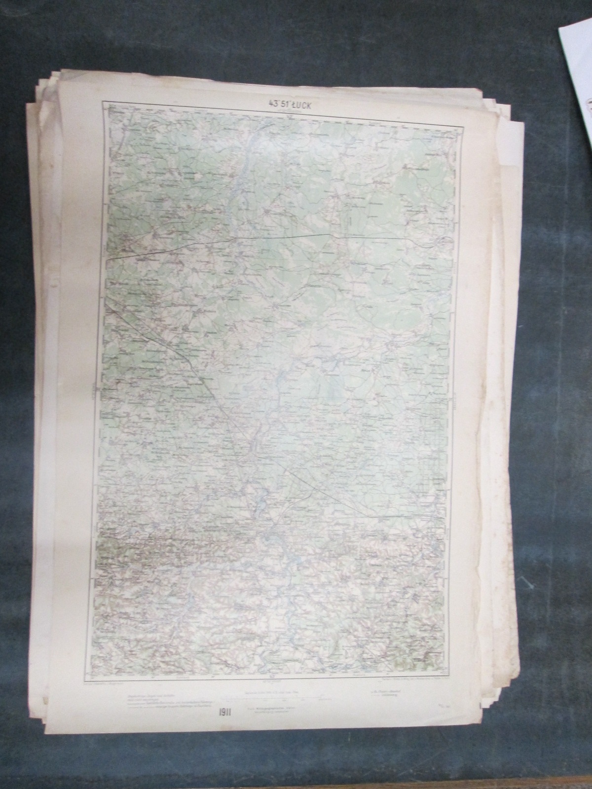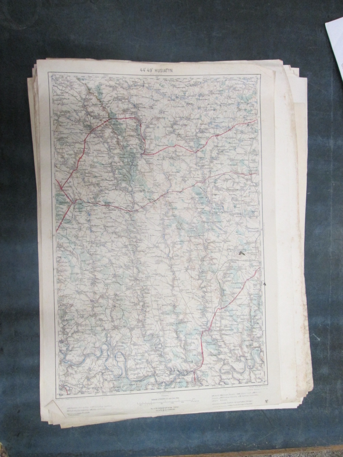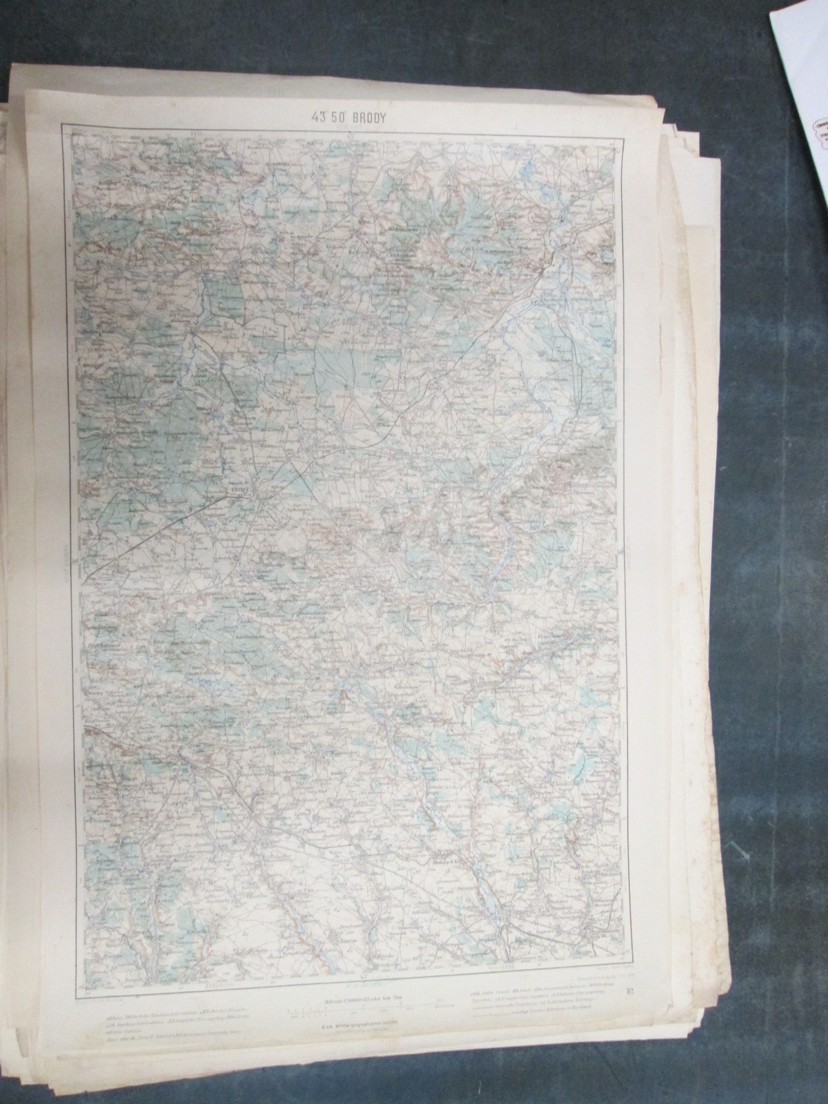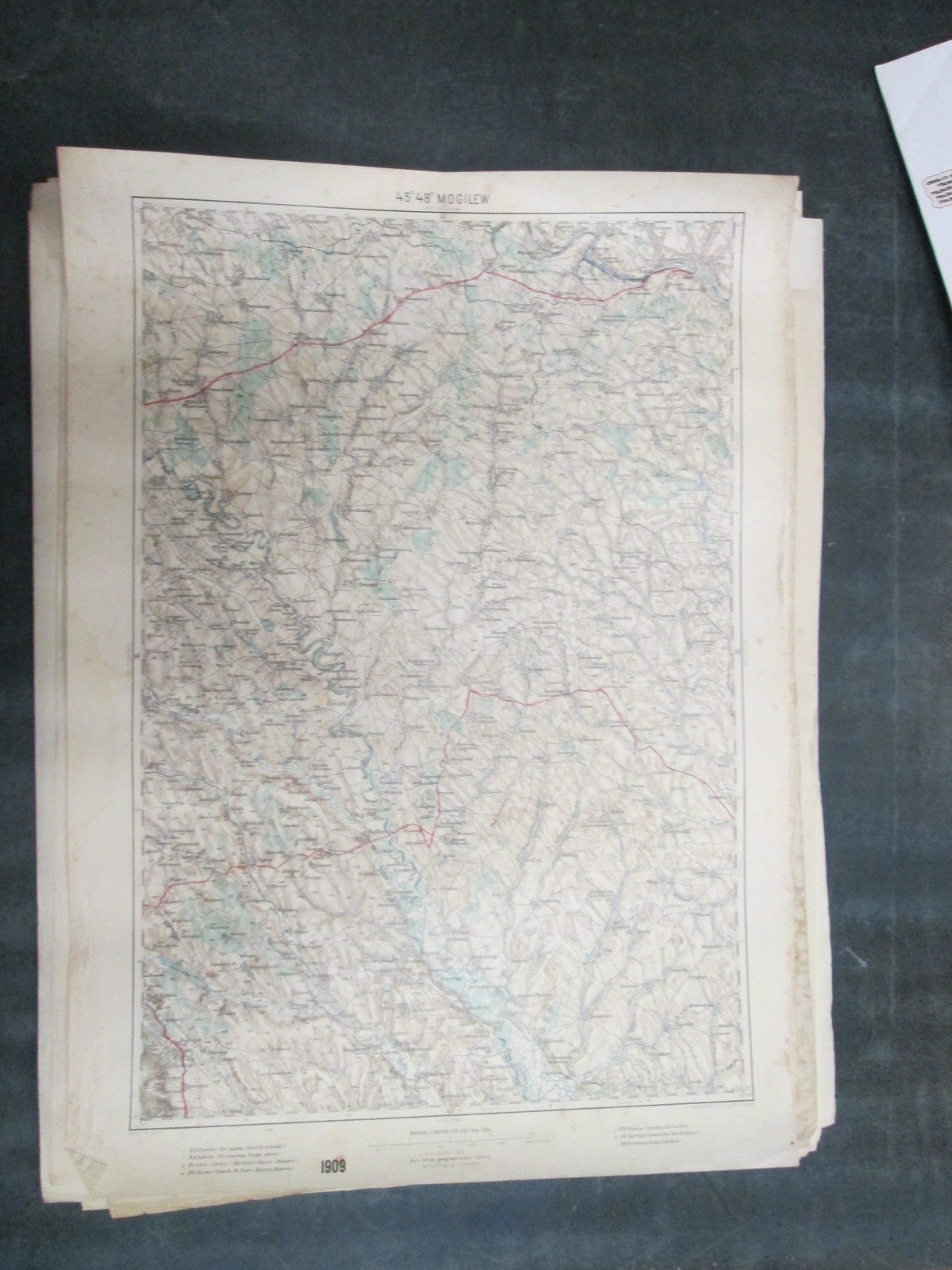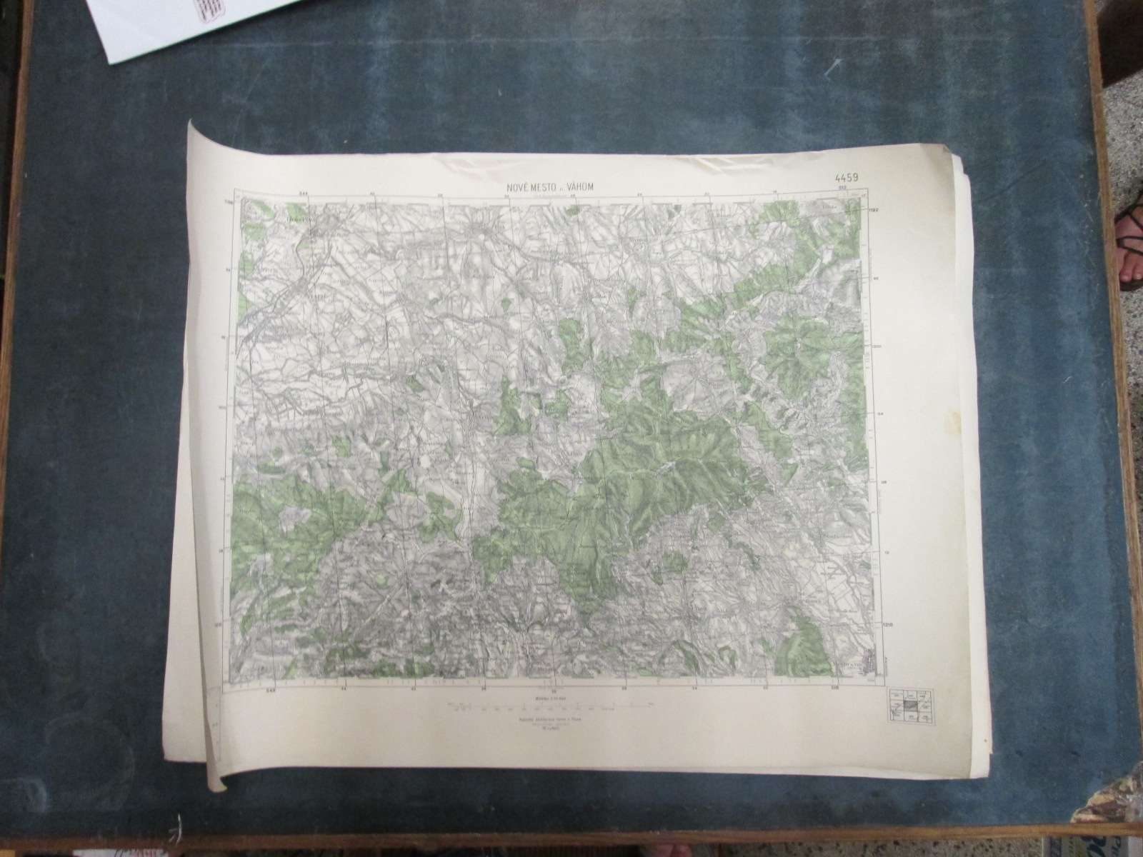 , Papírová mapa, na níž jsou nalepeny, pravděpodobně dodatečně desky. Desky popsány perem. Mapa místy mírně natržená. Na mapě jsou četné fleky. Měřítko: 1: 200 000