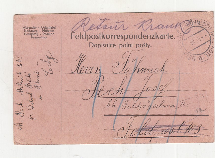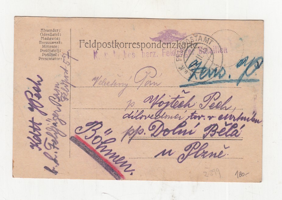 , prošlá poštou, popsaná, růžky mírně odřené