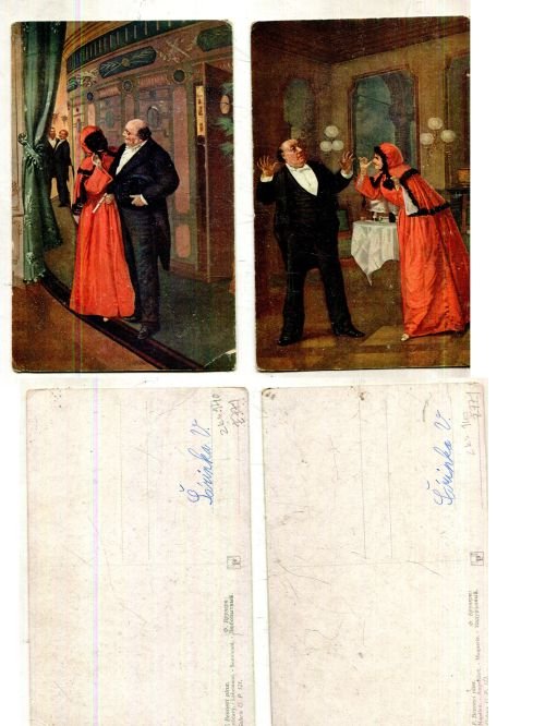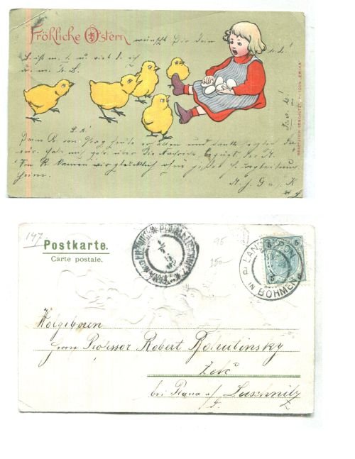 , popsaná, prošlá poštou, bez známky, s razítky