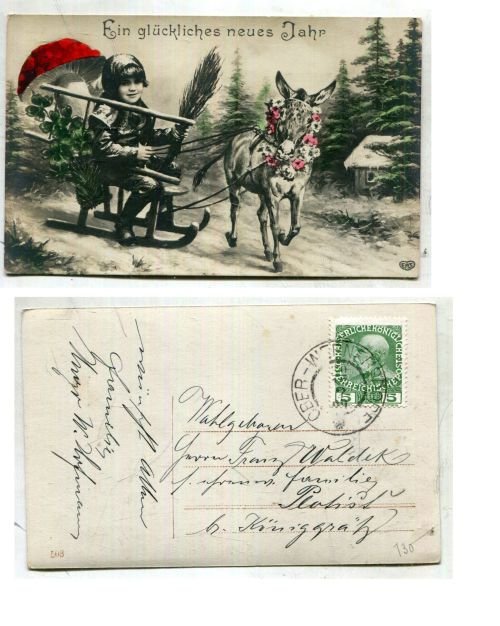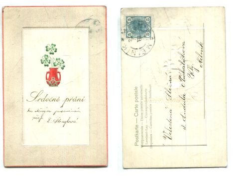 , popsaná, z obou stran, prošlá poštou, se známkou a razítkem, nečitelné datum, plastická