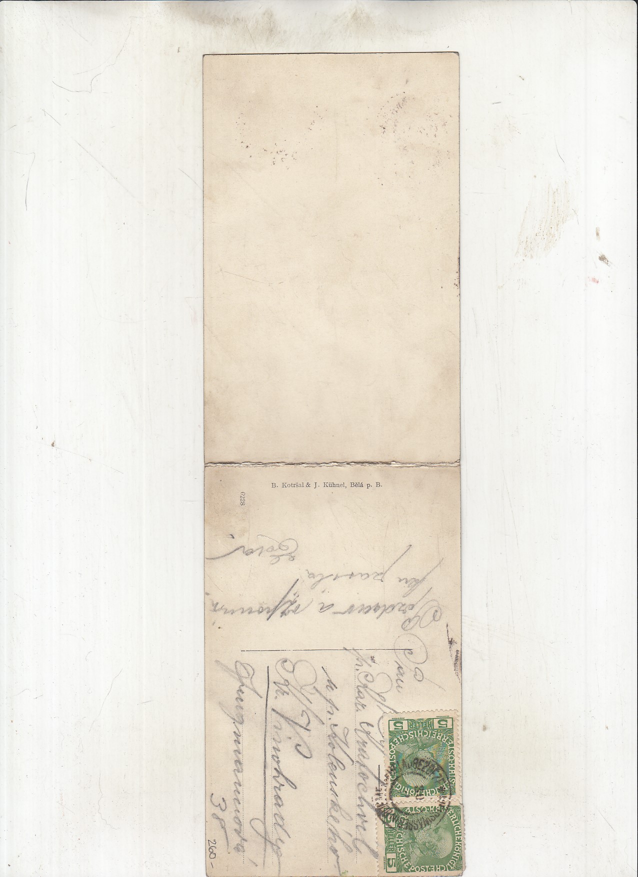 Prošla poštou, popsaná, se známkou, lehce odřené růžky.