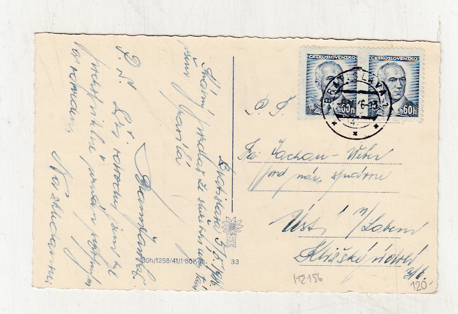 , Prošla poštou, popsaná, se známkou, mírně odřené růžky.