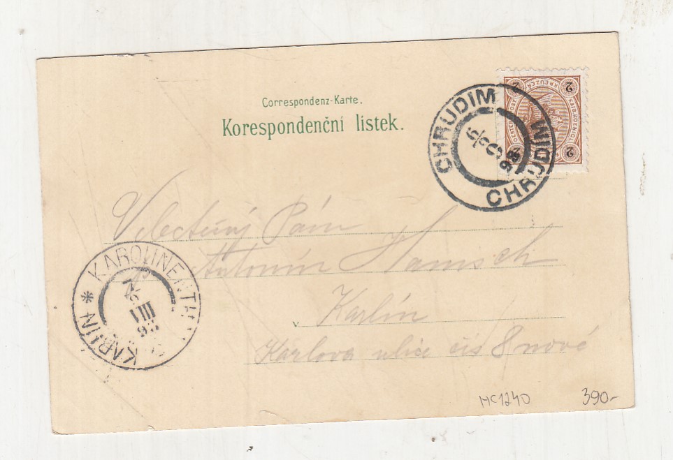 Prošla poštou, popsaná, se známkou, lehce odřené růžky.
