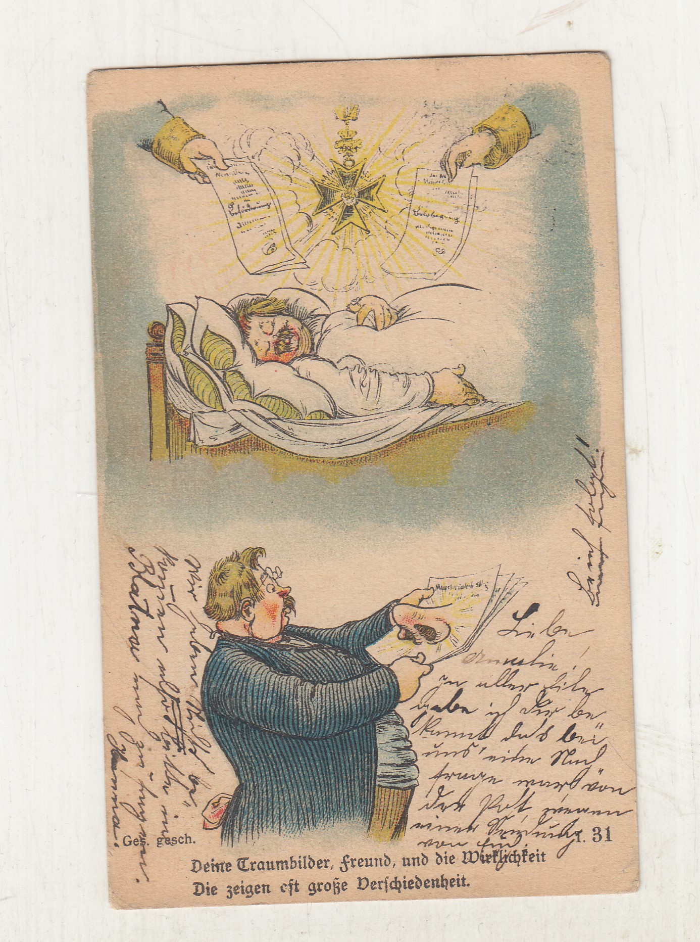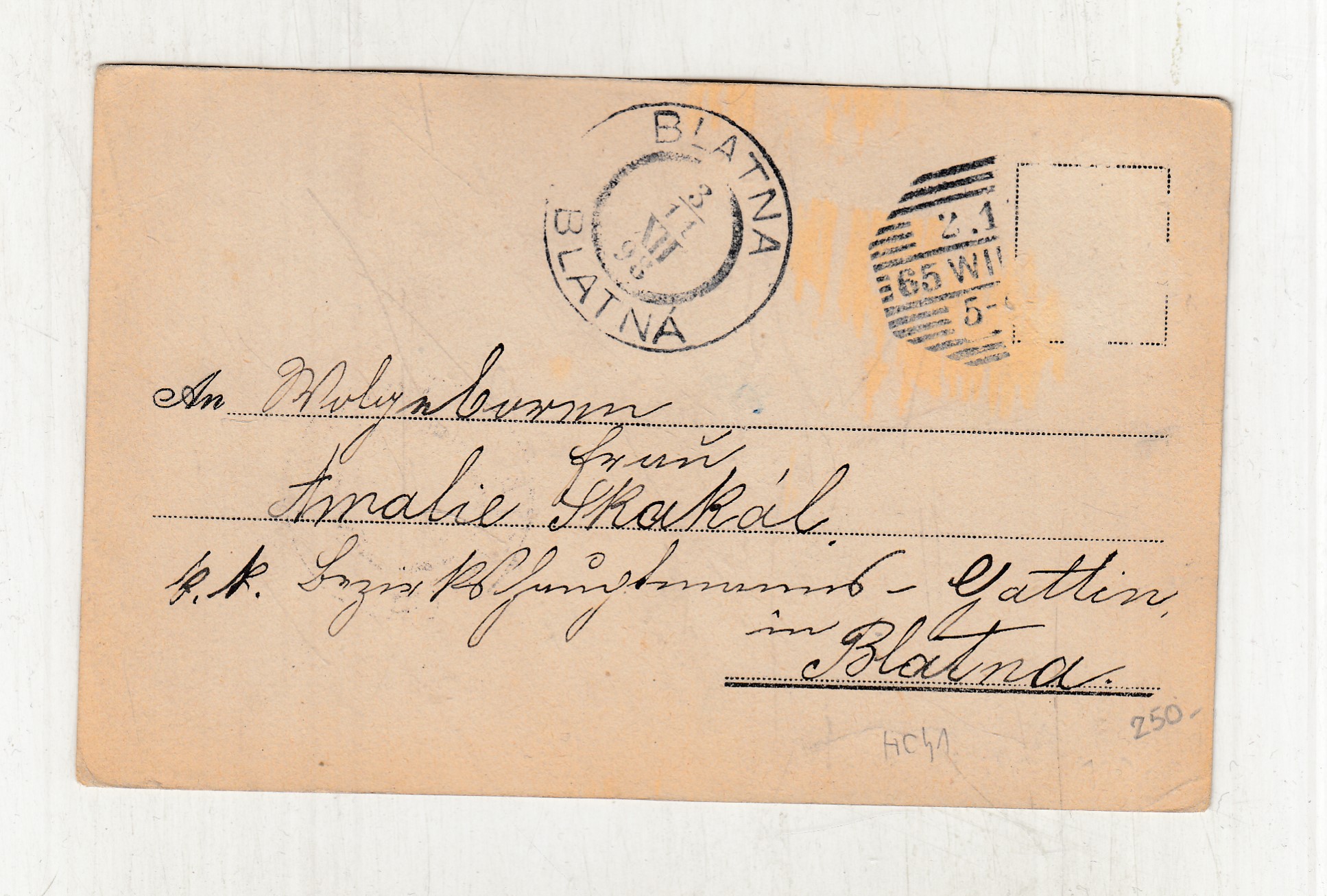 Prošla poštou, popsaná, bez známky, lehce odřené růžky.