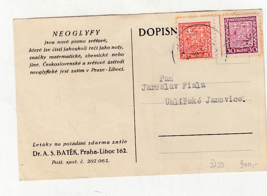 prošla poštou, popsaná, se známkou, růžky mírně odřené