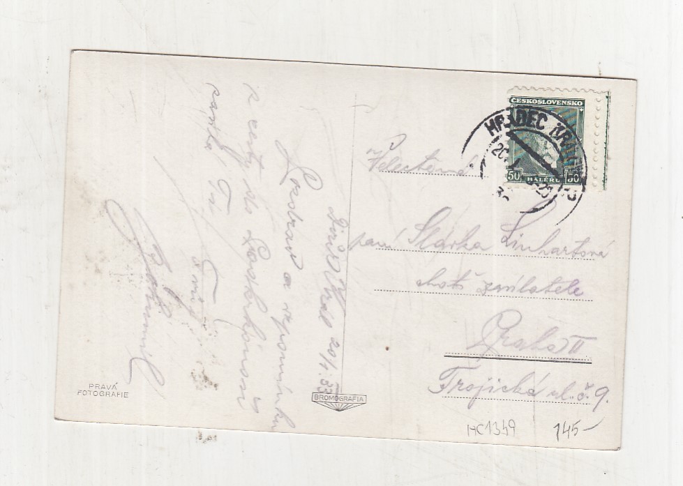 Prošla poštou, popsaná, se známkou, mírně odřené růžky.