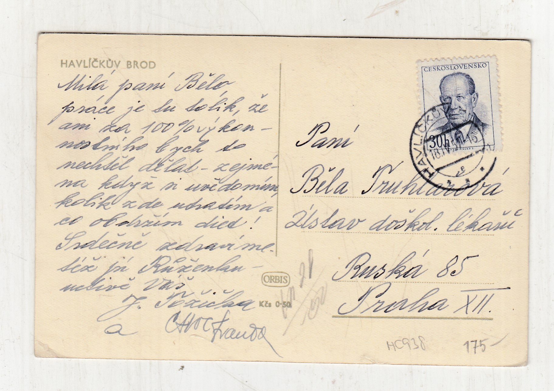 Prošla poštou, popsaná, se známkou, lehce odřené růžky.