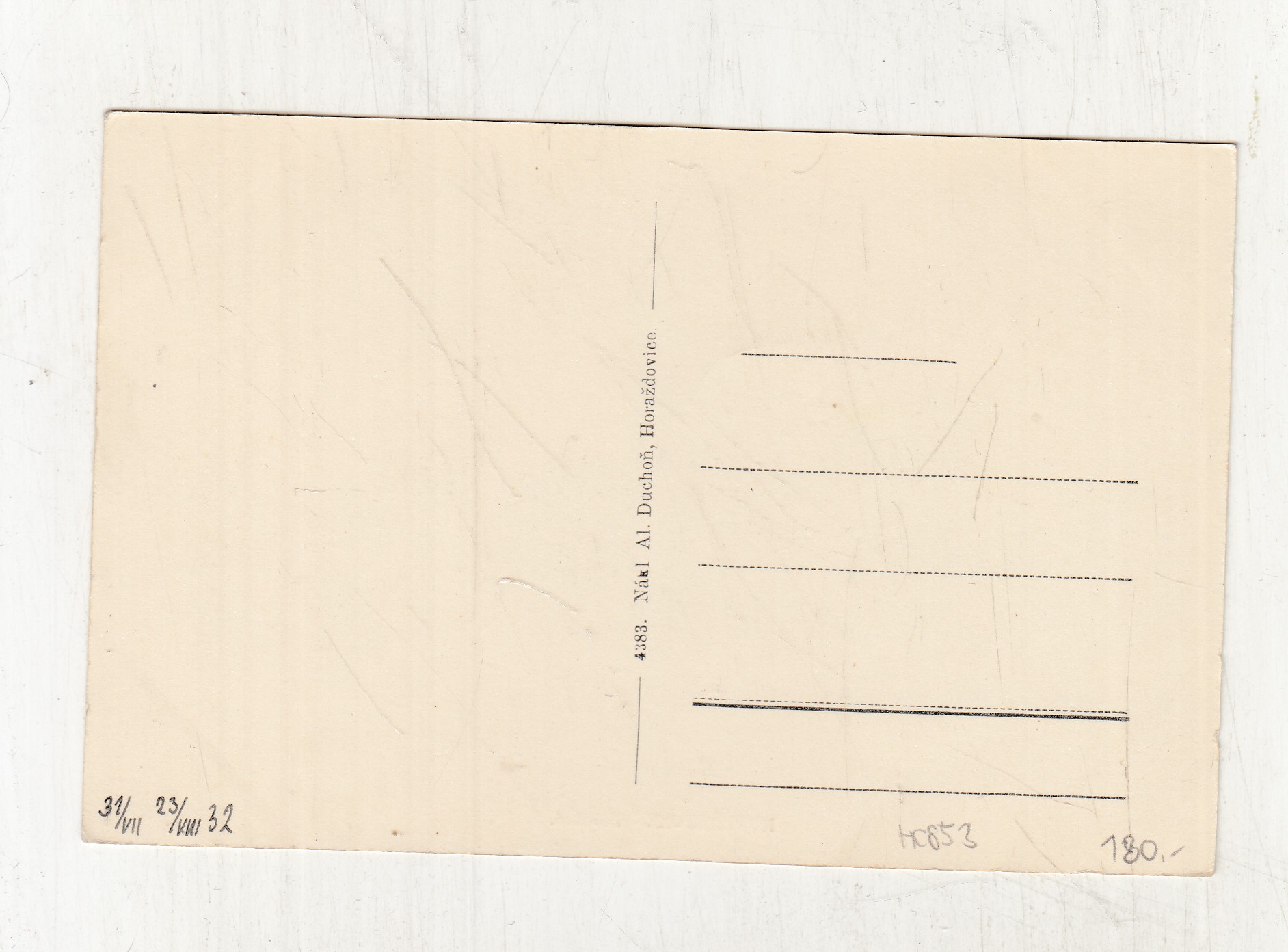 Neprošla poštou, nepopsaná, lehce odřené růžky.