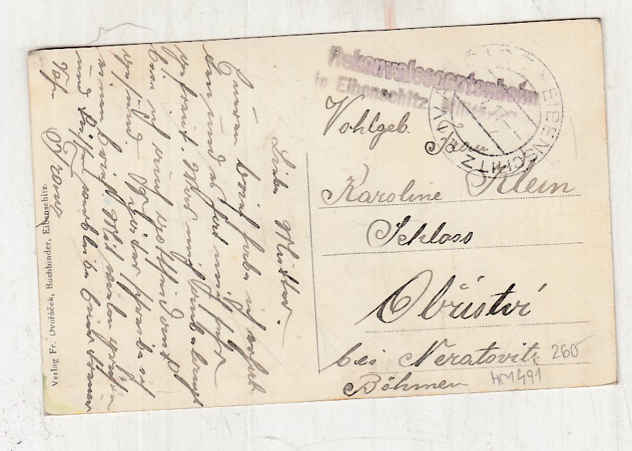 , Prošla poštou, popsaná, bez známky, odřené růžky.