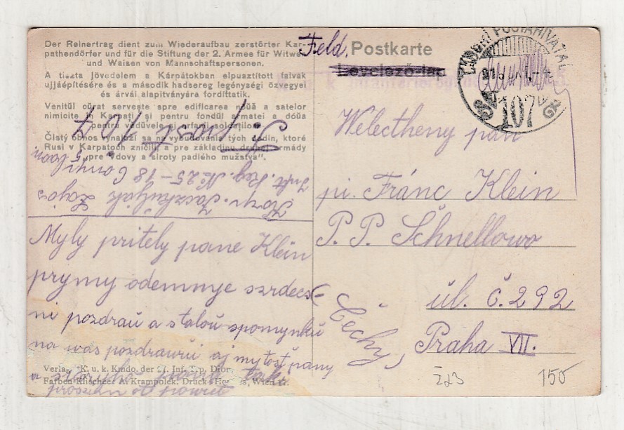 Prošla poštou, popsaná, bez známky, lehce odřené růžky.