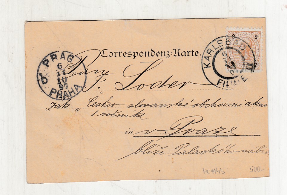 Prošla poštou, popsaná, se známkou, mírně odřené růžky.