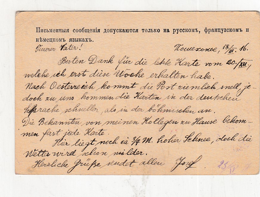 prošlá poštou, popsaná, růžky mírně odřené