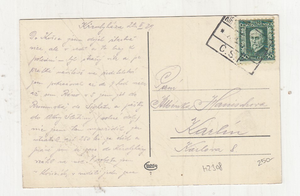 Prošla poštou, popsaná, se známkou, lehce odřené růžky.