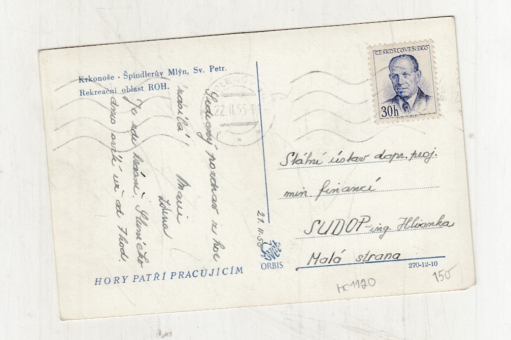 Prošla poštou, popsaná, se známkou, mírně odřené růžky.
