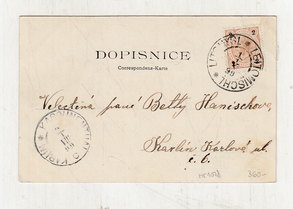 Prošla poštou, popsaná, se známkou, mírně odřené růžky.