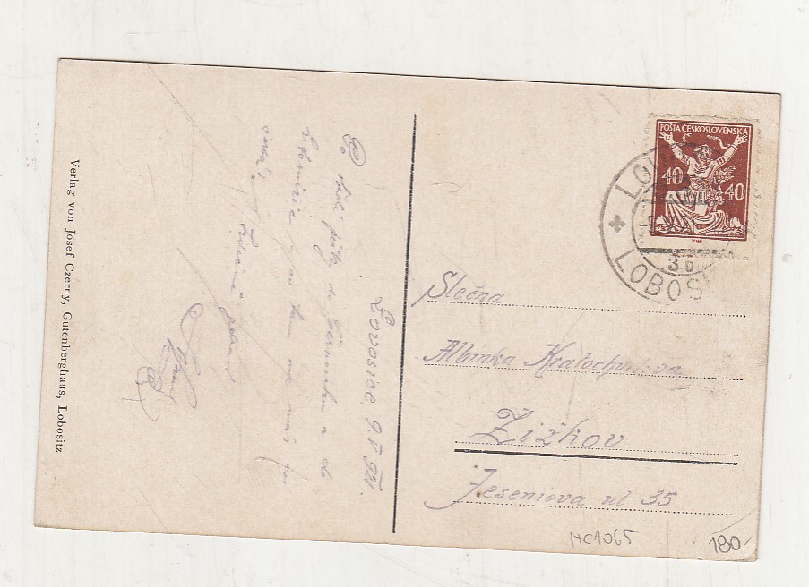 Prošla poštou, popsaná, se známkou, mírně odřené růžky.