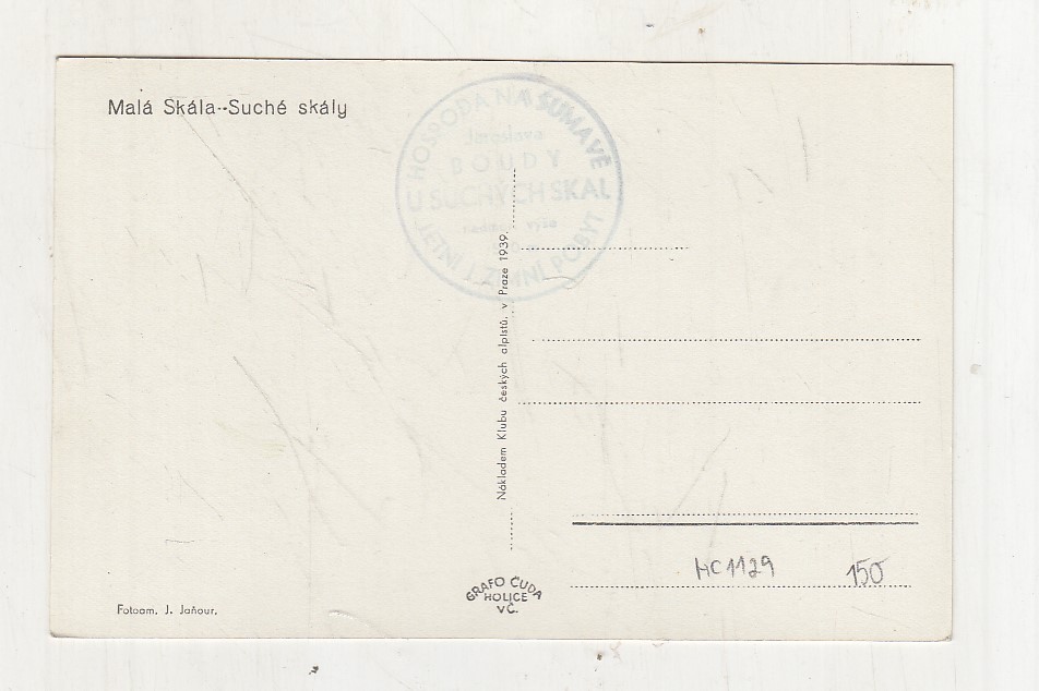 Neprošla poštou, nepopsaná, mírně odřené růžky, s razítkem.