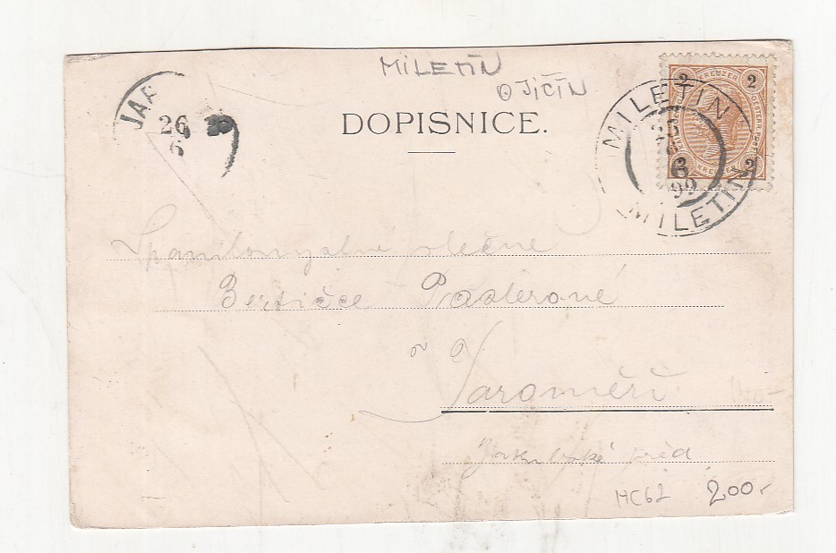prošla poštou, popsaná, se známkou, lehce odřené růžky