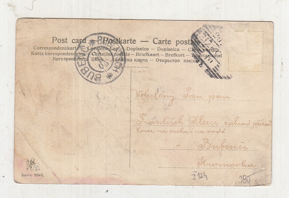 Prošla poštou, popsaná, bez známky, lehce odřené růžky.