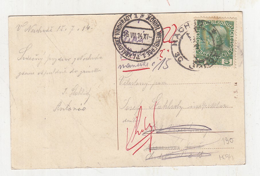 prošla poštou, se známkou, popsaná, lehce odřené růžky
