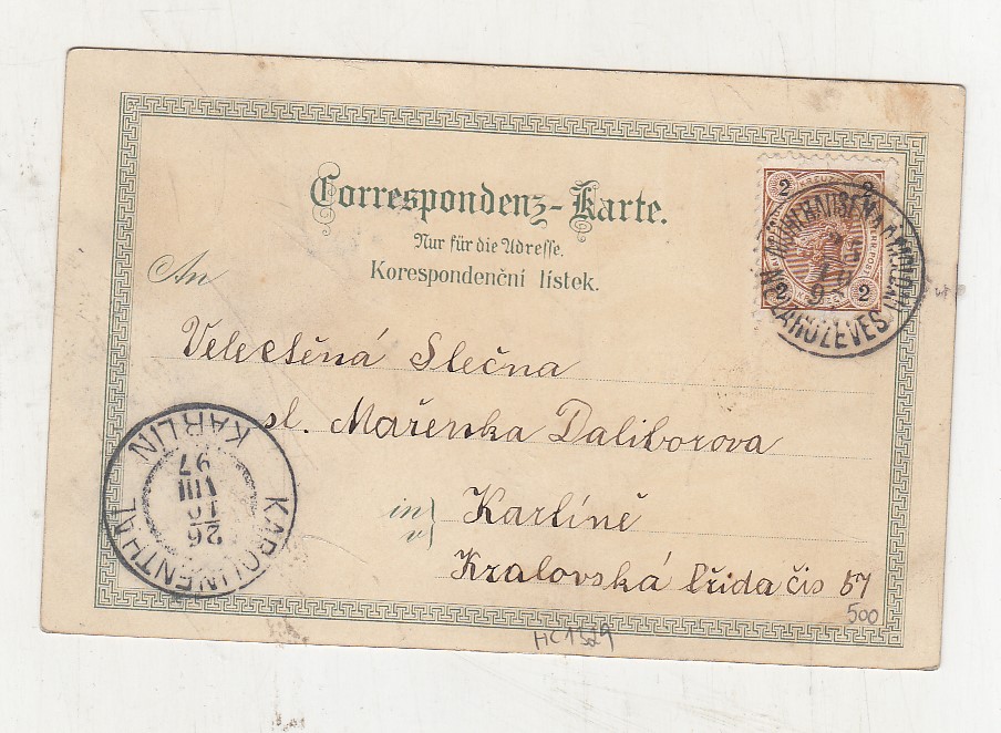 Prošla poštou, popsaná, se známkou, mírně odřené růžky.