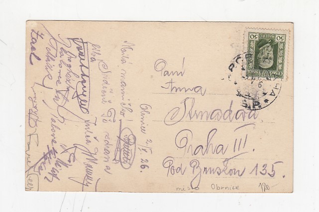 Prošlá poštou, lehce odřené růžky, mírně zašpiněná