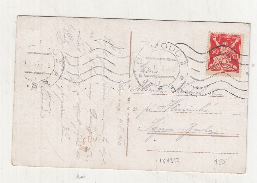 Prošla poštou, popsaná, se známkou, lehce odřené růžky.