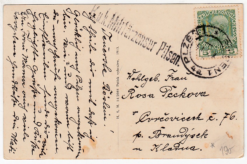 Popsaná a prošlá poštou, minimálně opotřebené růžky, lehce zašpiněná