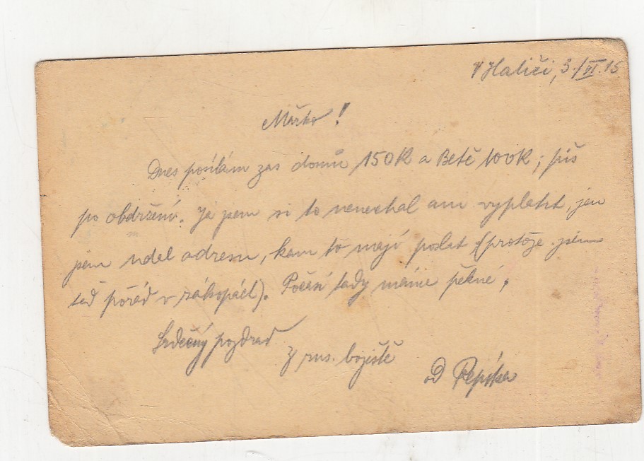 , prošlá poštou, popsaná, růžky mírně odřené