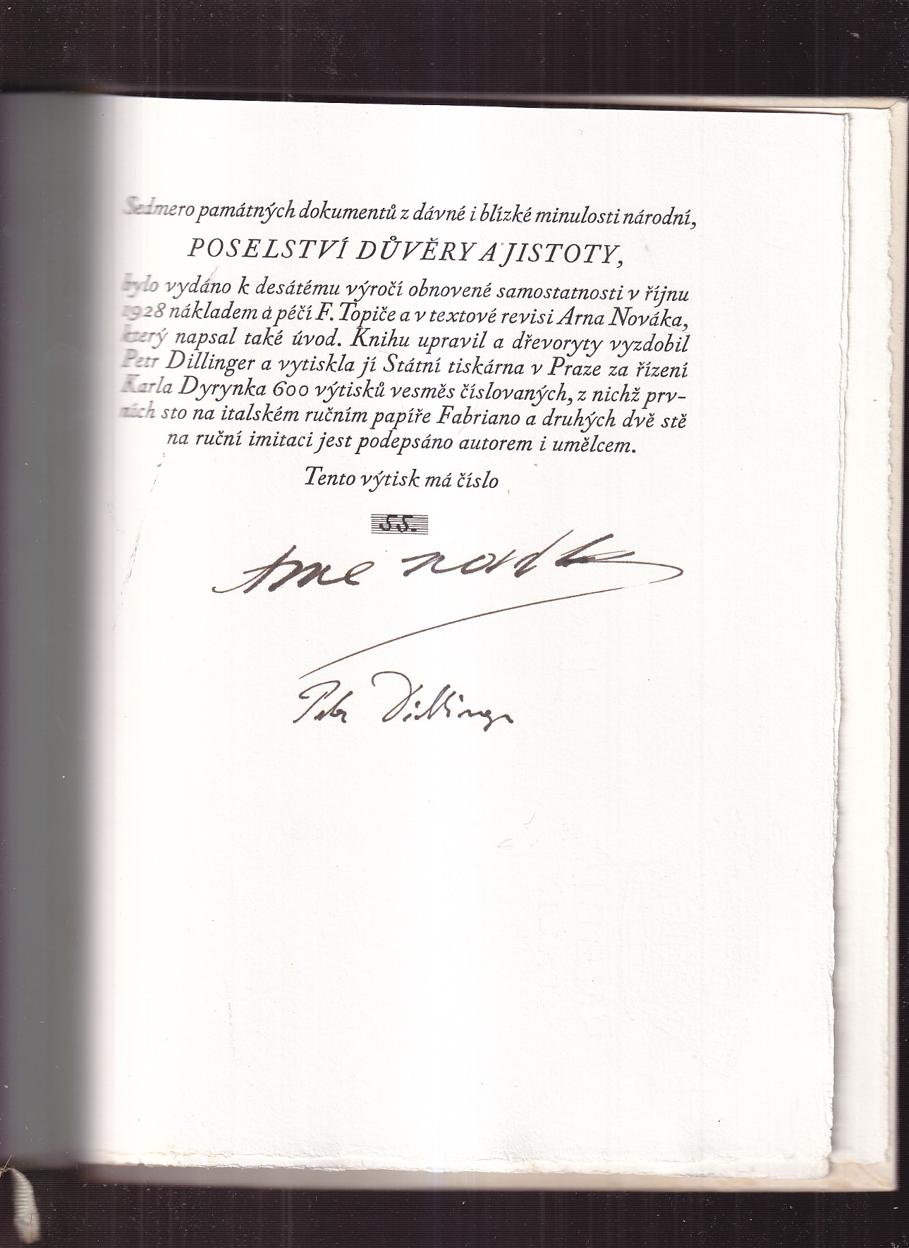 podpis autora a výtvarníka v tiráži, č. 55/600, ruční papír Fabriano, O. kart, v dolní části desek mírně zateklá