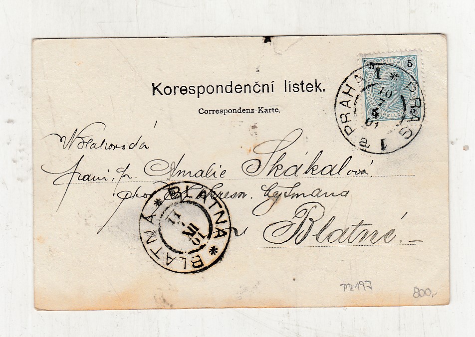 Prošla poštou, popsaná, se známkou, lehce odřené růžky.