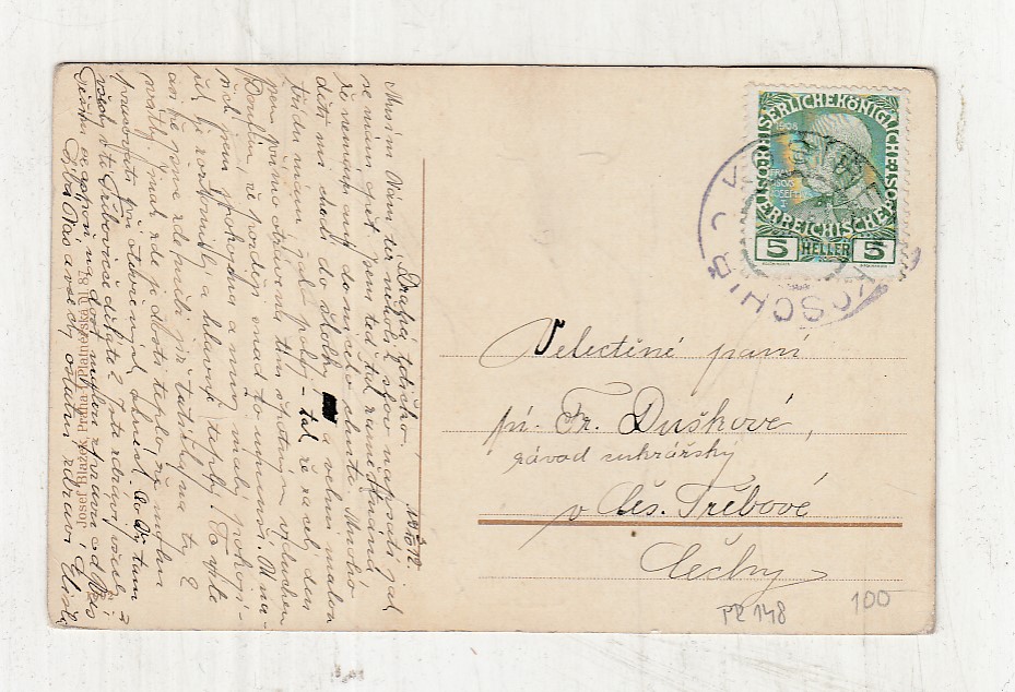 Prošla poštou, popsaná, se známkou, mírně odřené růžky.