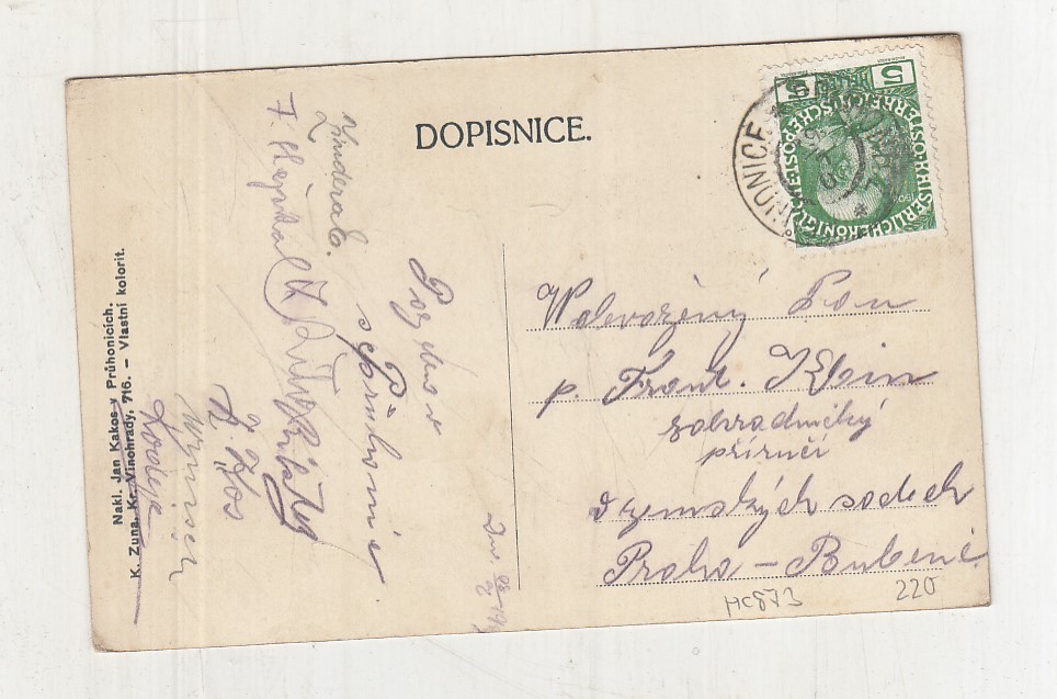 Prošla poštou, popsaná, se známkou, odřené růžky.