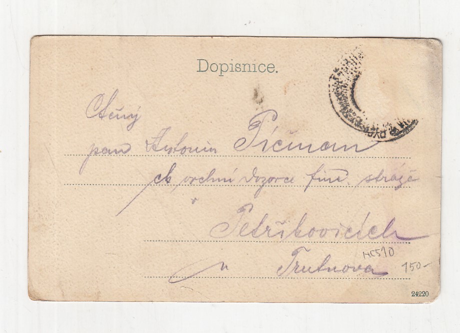 prošla poštou, popsaná, bez známky, lehce odřené růžky