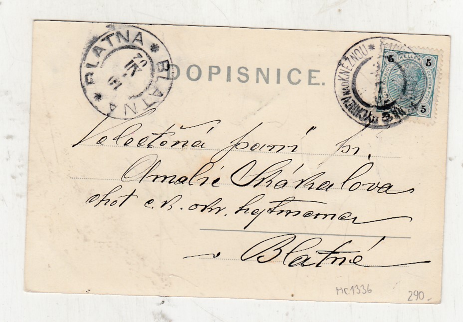 Prošla poštou, popsaná, se známkou, mírně odřené růžky.