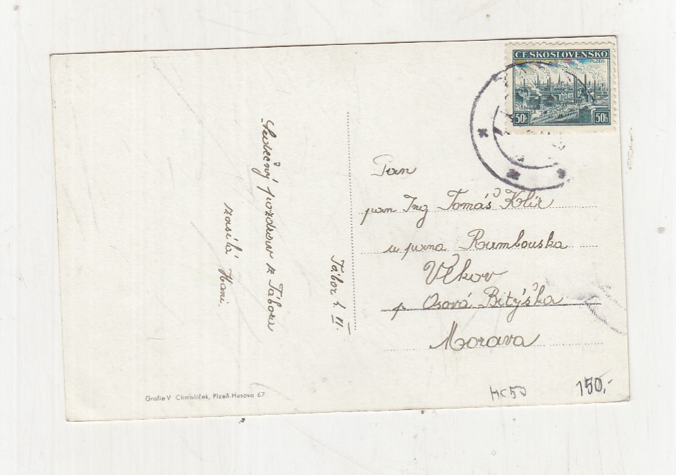 Prošla poštou, popsaná, se známkou, lehce odřené růžky.