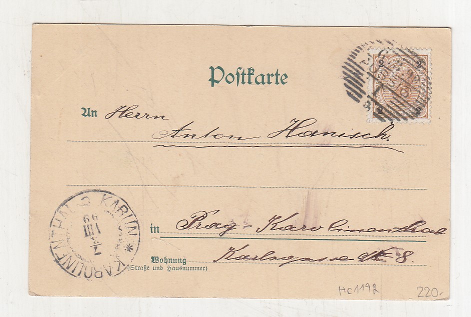 Prošla poštou, popsaná, se známkou, mírně odřené růžky.