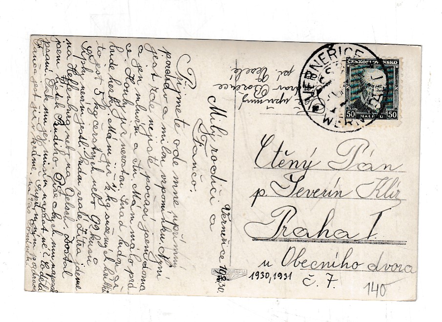 Prošla poštou, popsaná, se známkou, lehce odřené růžky.
