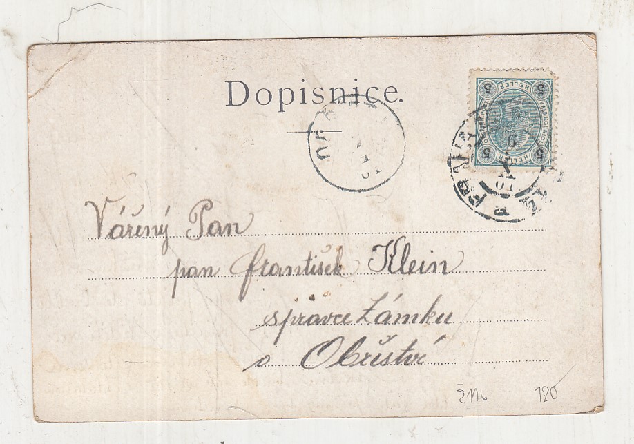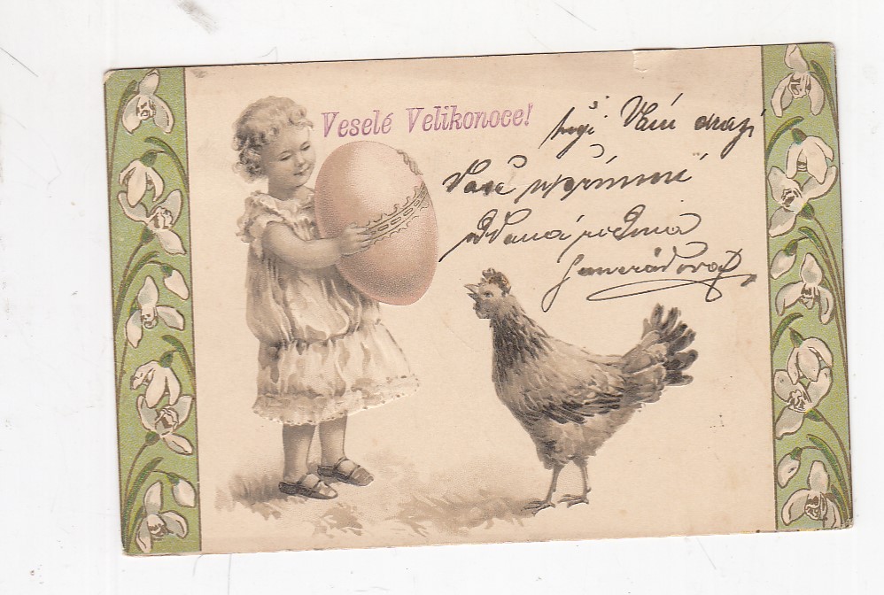 Prošla poštou, popsaná, se známkou, lehce odřené růžky.