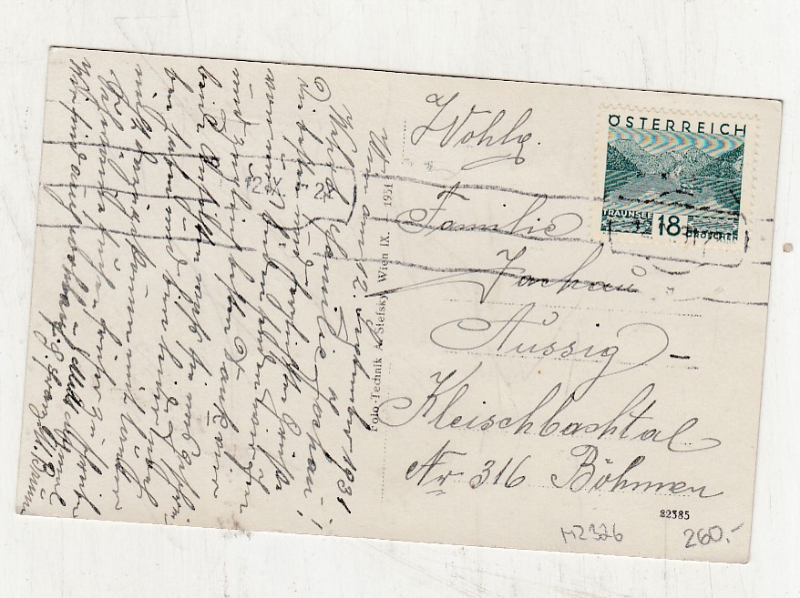 Prošla poštou, popsaná, se známkou, lehce odřené růžky.