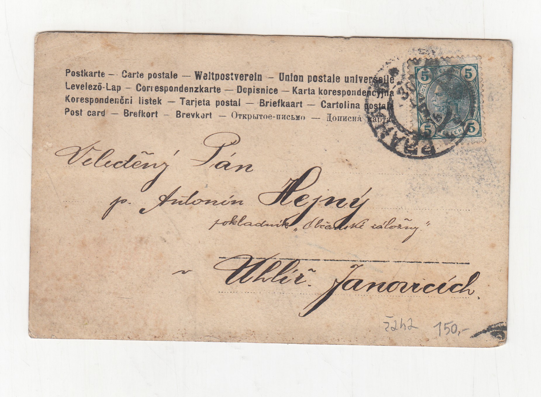 prošla poštou, popsaná, se známkou, růžky mírně odřené