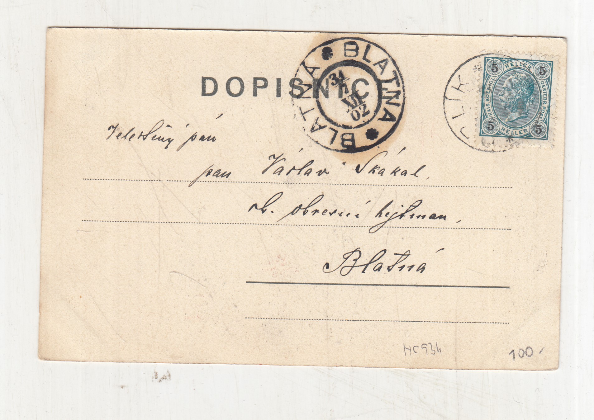 Prošla poštou, popsaná, se známkou, lehce odřené růžky.