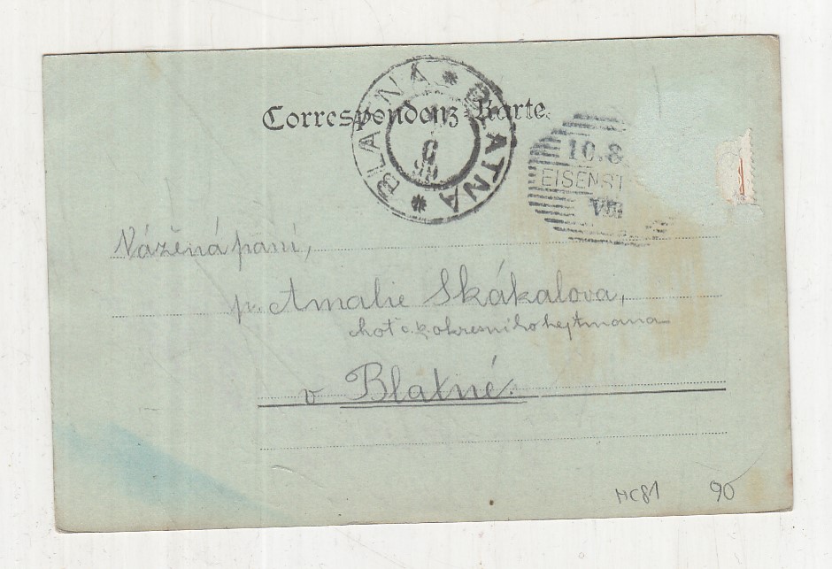 Prošla poštou, popsaná, bez známky, mírně odřené růžky.