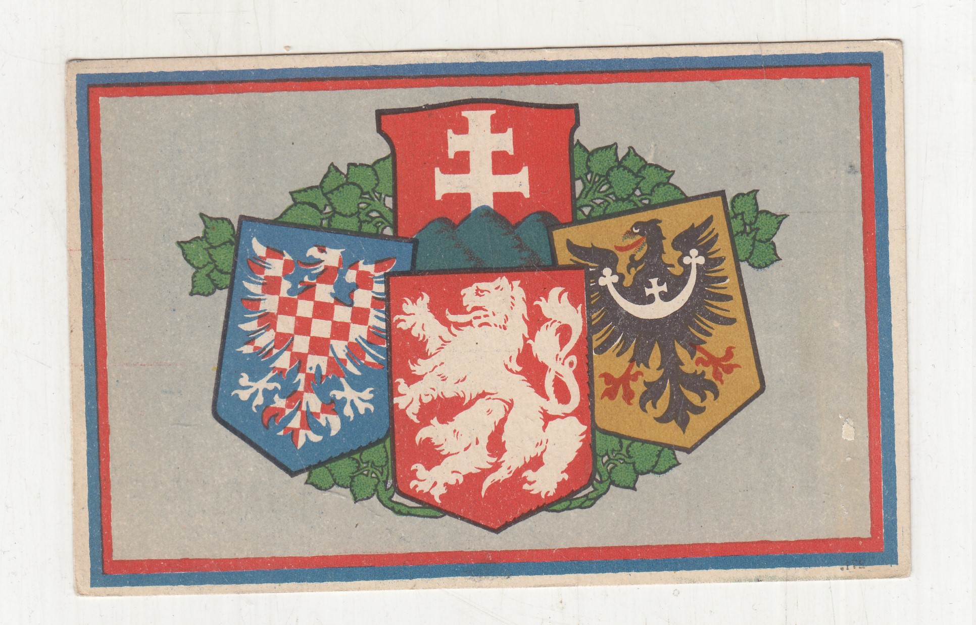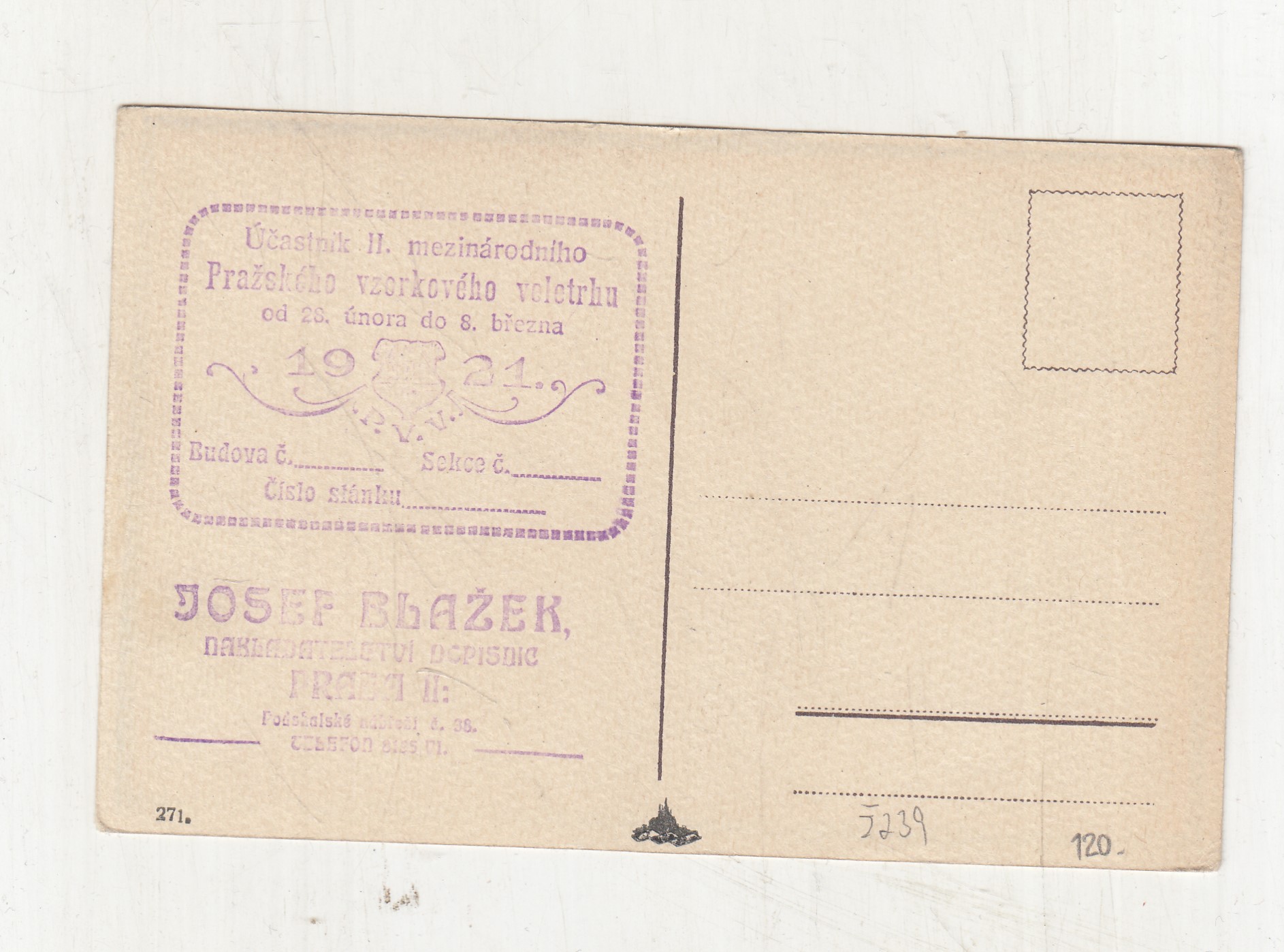 Neprošla poštou, nepopsaná, s razítkem, lehce odřené růžky.